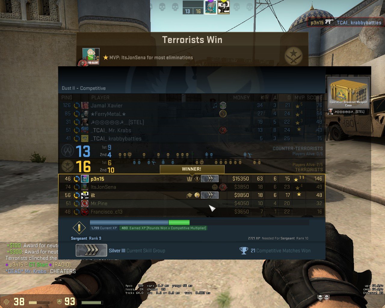 Norm spēlējam, uzvraam kur 7-2. pēkšņi zaudējam raundu 4v2, kur vienam bija 6hp un es nosaucu pa idiotiem, jo 2 cilvēki nomirst no 6hp čaļa un es biju iedevis infu kur vēl katrs atodas..., man saak šaut katru raundu bez iemesla