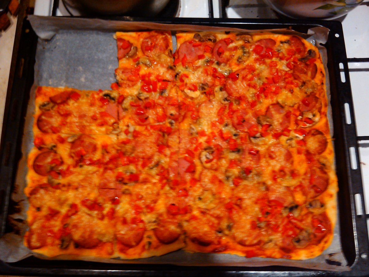 Laika taupīšanas nolūkā nopirku gatavo picu pamatni - tāds mēsls, nekad vairāk nepirkšu! Bet tā jau garšīgi.