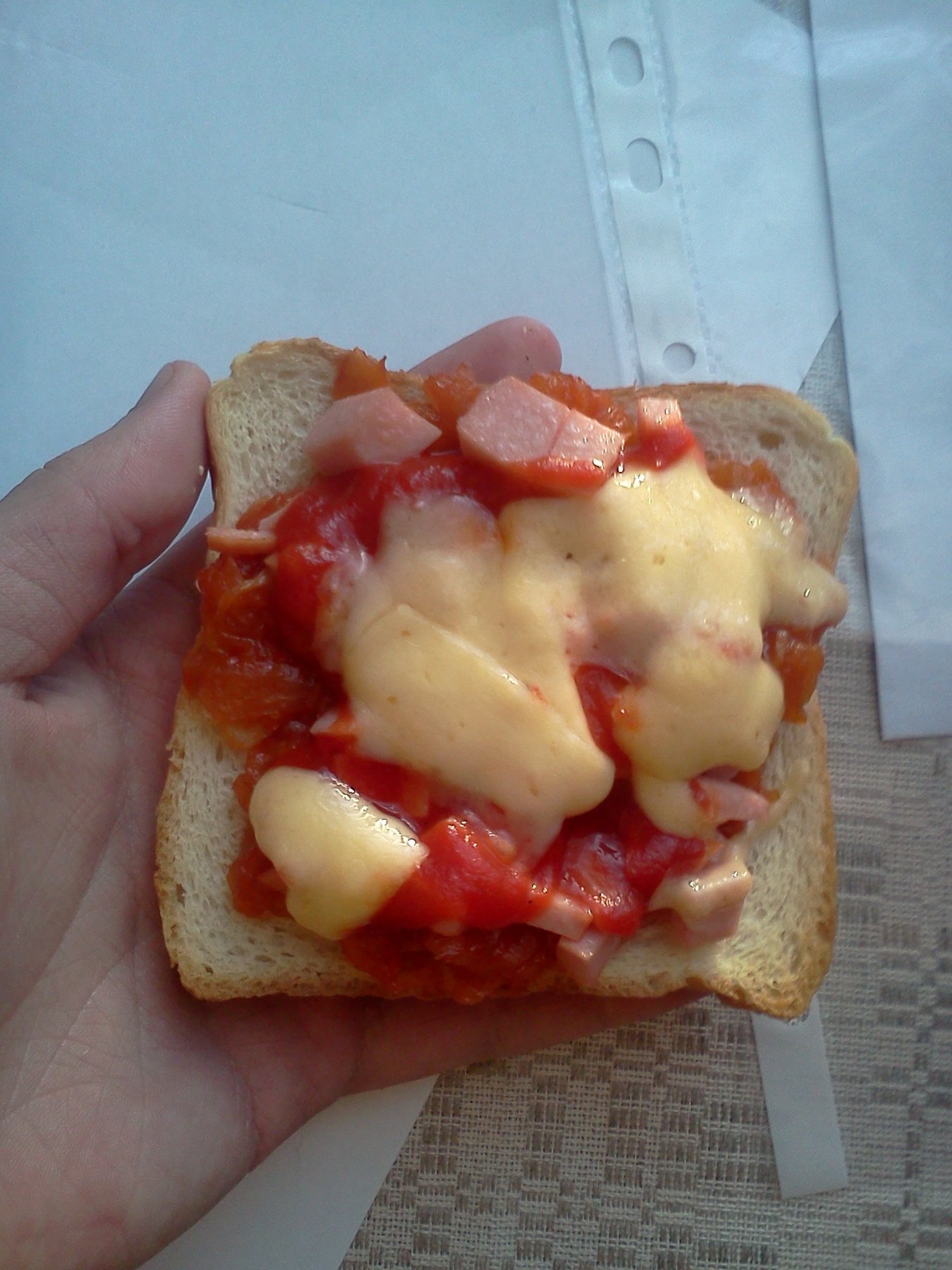 Viss tas pats kas picām, bet biju slinks, mīklas vietā maizītes,saliku