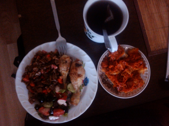 Šodien viss ko apēdu bija 2 desumaizītes, bet visu dienu pārtieku no kafijas