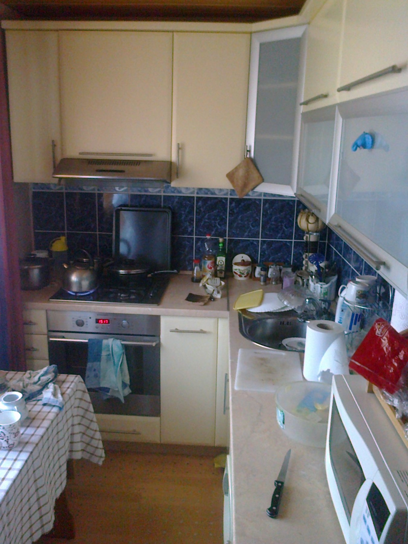 Esmu lauķis, viss nekārtīgs, vecmodīgs, grīdai krāsa iet nost, vecas mēbeles un plīts.