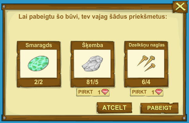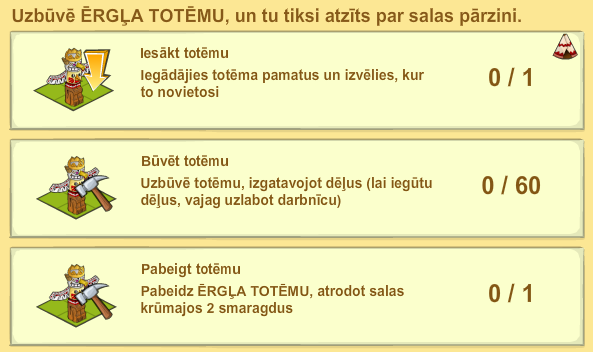 Kad Ērgļa totēms ir nopirkts, varam sākt to celt. Celšanai vajag 60 koka dēļus un attiecīgi tik daudz enerģijas.