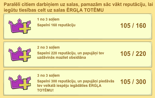 2 daļa. Reputācijas celšana.Kopā vajag savākt 300 reputācijas.