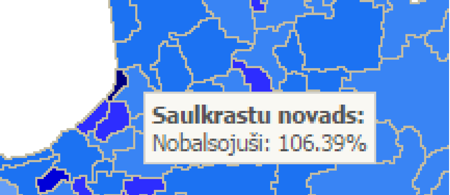 Pagājušajās vēlēšanās Saulkrastu novadā bija virs 200%.- -9
