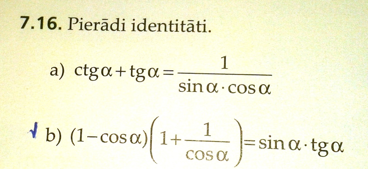 Varat kads palidzet ar trigonometriju, vajag pieradit identitati.