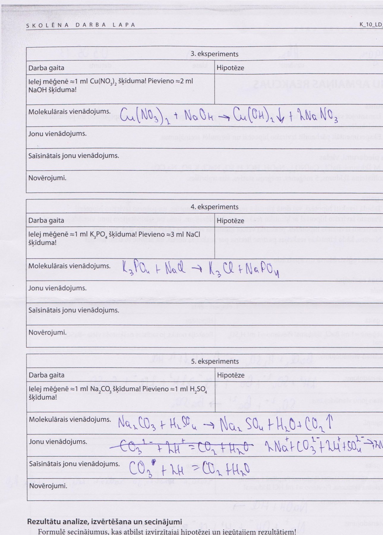 vajag tiem diviem uzrakstīt jonu vienādojumus un saīsinātās jonu vienādojumus un hipotēzi vai reakcija notiks