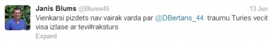 Rakājos random pa tviteri un uzdūros uz basketbolista Blūma profila un tvīts par Bertāna jaunākā traumu. Pirmo reizi redzu, ka kāds Latviešu sportists lamājas sociālajos tīklos