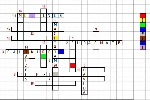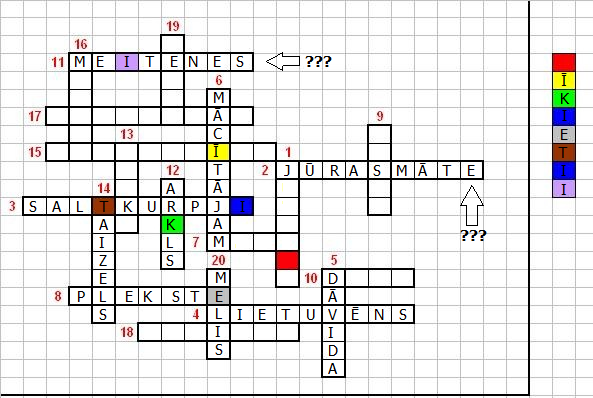 O, ar diezgan acīmredzamo @burvis apskaidrību, kuru tomēr mēs nesapratām, secinājām, ka vārds rūtiņās sanāk ''LĪBIETIS'', tātad, 1. ir Jūrmala, bet 12 un 11 nav pareizi.