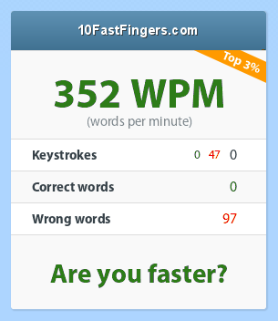 Beat me http://10fastfingers.com/speedtests/generate...7_0_97.74_3_133 http://10fastfingers.com/typing-test/latvian