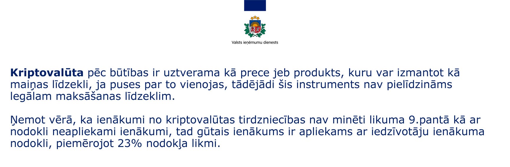 @germs vai kāds cits zinošs cilvēks varbūt zin atbildi. Esmu jauns un nepieredzējis pagaidām un nodokļi man ir melna bilde. Lieta tāda, ka tuvākajās dienās man ienāks krietna summa pārdodot kriptovalūtu, vai tas apliekas ar nodokli? Un ja jā, kā man rīkoties, ko man iesākt? Paldies jau iepriekš!