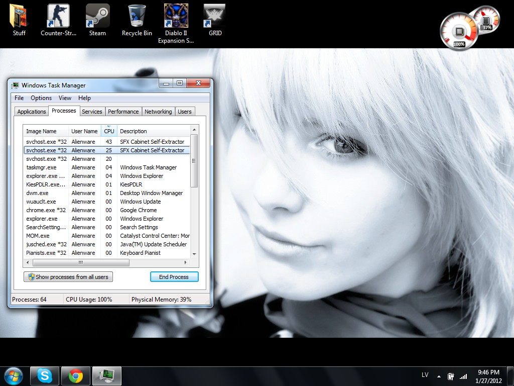 Pirmo reizi 2 nedēļu laikā restartēju PC. Tagat cpu ir uz 100% un rādas ka notiek kaut kāds mistisks process, kuru aizverot tas atkal atveras.