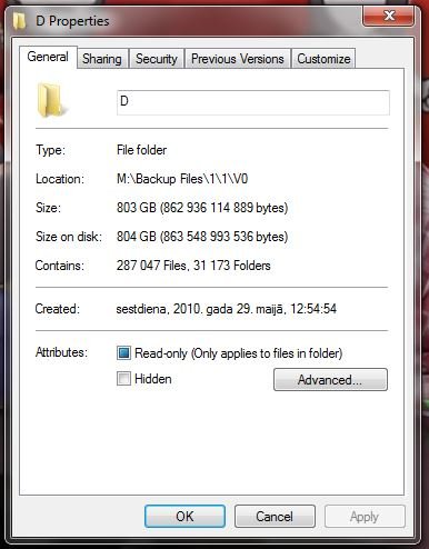 Mapītes izmērs (skatoties cuar Propperties) ir 0 biti; mapīte pie tam ir read-only, mēģinot atvērt kādu no mapītēm tajā izmetas paziņojums, ka man nav dota atļauja šo mapīti skatīt.